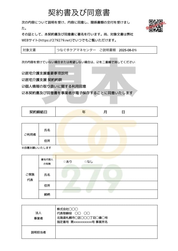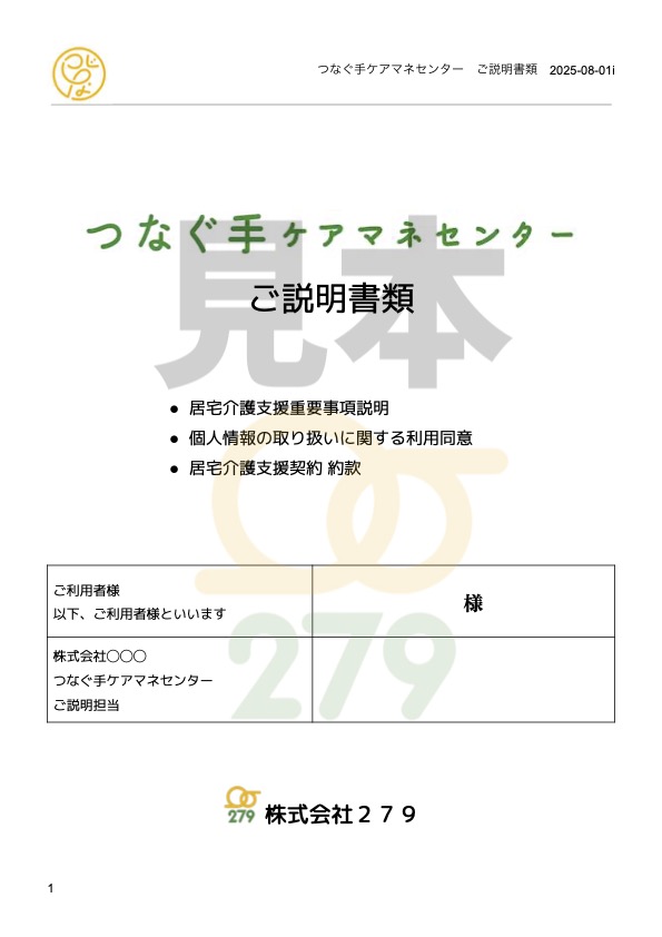 つなぐ手ケアマネセンターいわきでは、契約書と説明書類(重要事項説明書)をWEB公開しています。